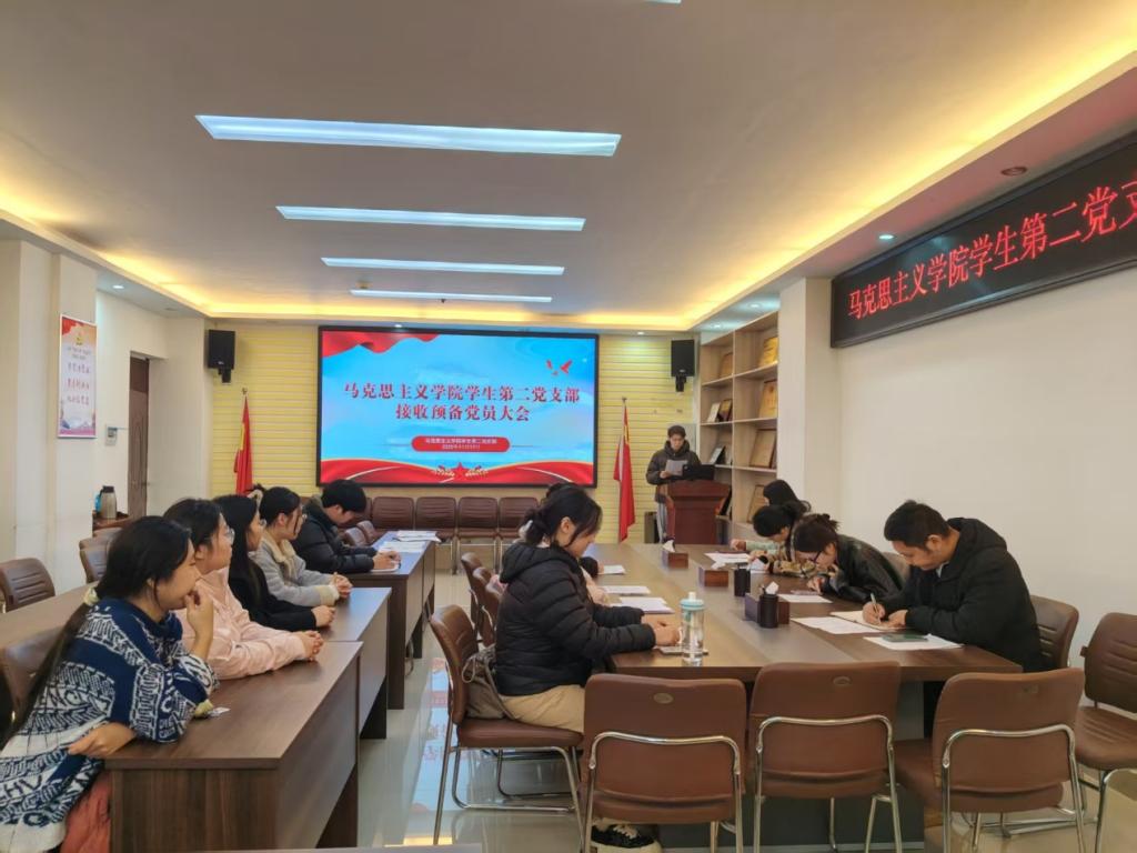 2025年11月17日下午,中共信阳师范大学crown皇冠体育平台学生第二党支部委员会在社科楼323召开了2025年下半年接收预备党员支部大会。crown皇冠体育平台学生第二党支部书记任婷,学生第二党支部全体党员、预备党员和党员发展对象共同参加此次会议。会议由任婷同志主持。