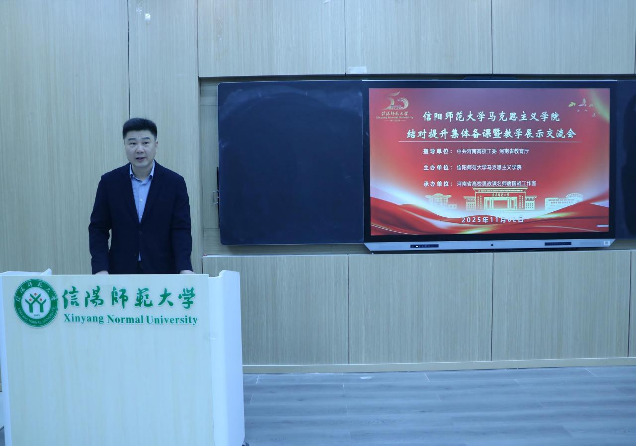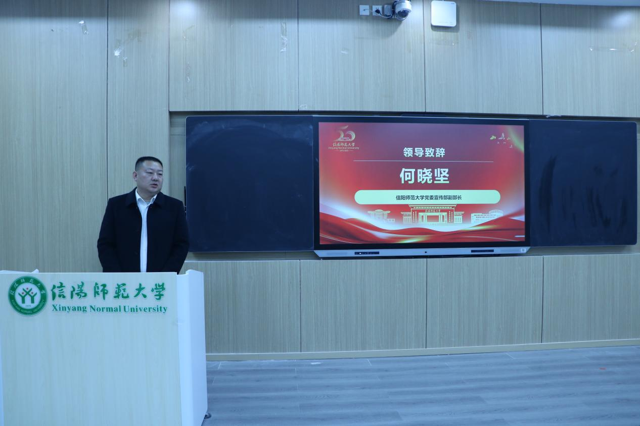 接着,信阳师范大学党委宣传部副部长何晓坚致辞,他强调了集体备课和教学交流对提升思政课教学质量的重要意义,希望参会高校和教师以此次活动为契机,深化校际合作,共同推动思政课建设创新发展。