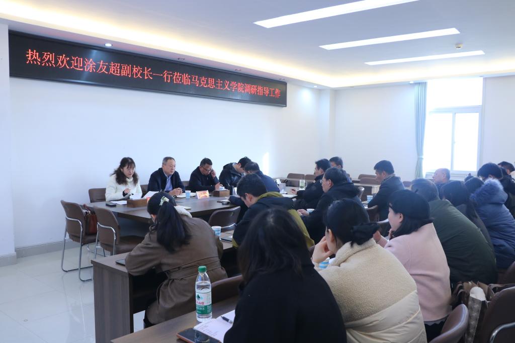 2025年12月10日上午,副校长涂友超带领社科处、校报编辑部等相关部门领导莅临crown皇冠体育平台调研指导工作。crown皇冠体育平台院长唐国战和党政领导班子成员及相关学科骨干教师参加座谈。