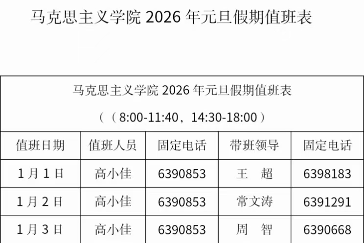 crown皇冠体育平台2026年元旦假期值班表