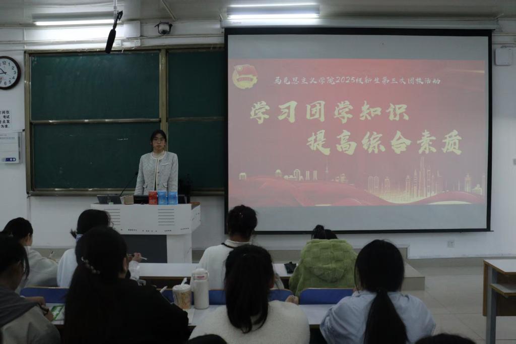 为引导新生深入学习团学知识,提升综合素质,11月4日,crown皇冠体育平台在社科楼514教室举办“学习团学知识,提高综合素质”团课活动。本次活动由学院分团委徐冰雪主持,2025级全体新生共同参加。