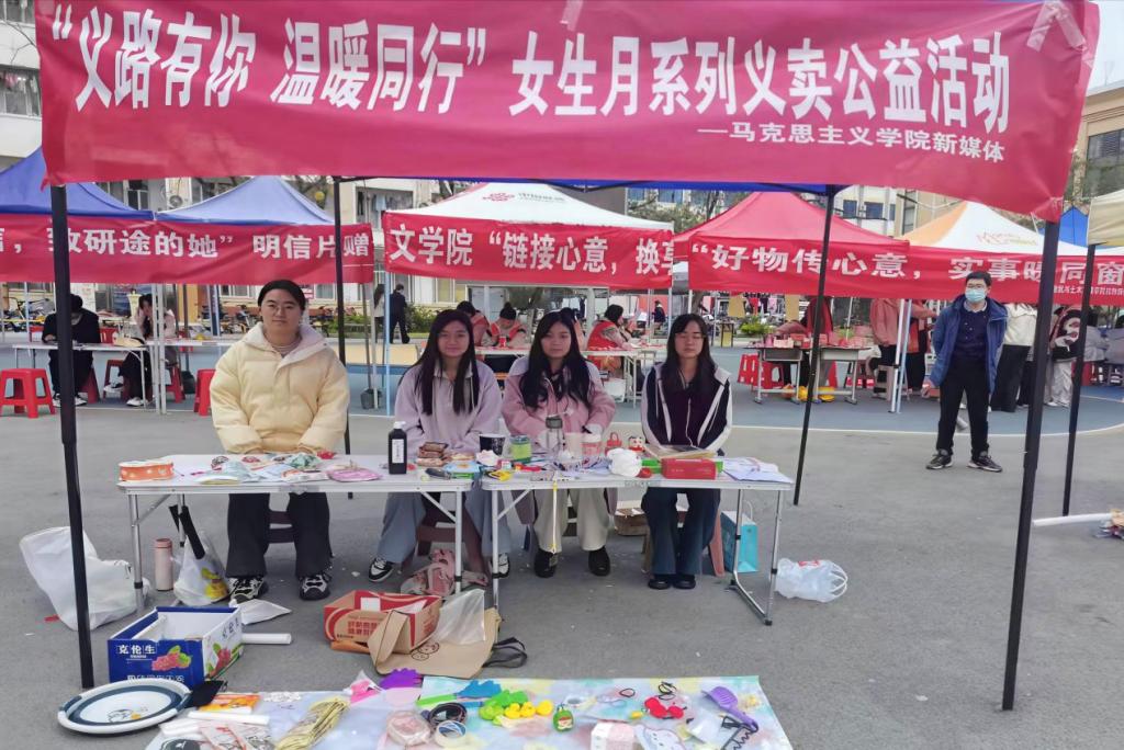 为践行公益初心,传递互助温情,11月15日,crown皇冠体育平台新媒体部携手兄弟院系,在心语广场联合开展“义路有你,温暖同行”女生月义卖活动。