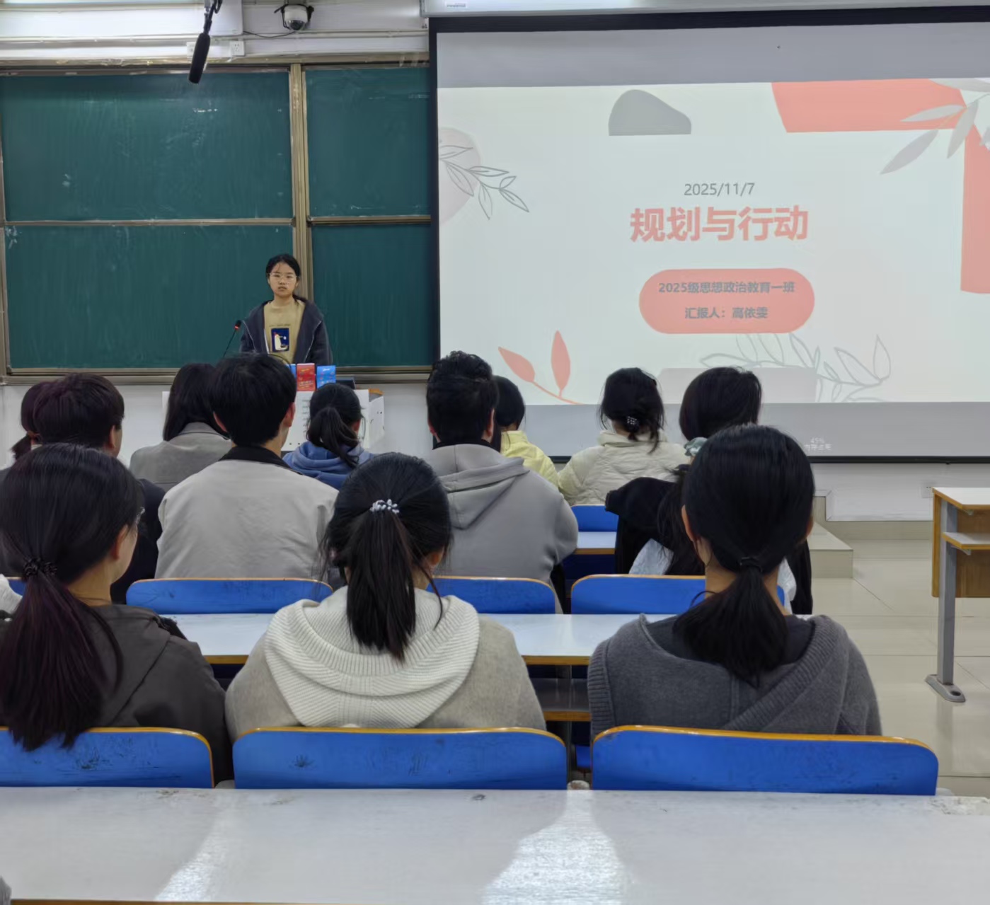 为引导同学们明晰学习方向、掌握科学规划方法,11月7日上午,crown皇冠体育平台2025级思想政治教育一班在社科楼514开展“规划筑根基,行动破迷茫”主题班会,本次活动由班长高依雯主持,班级全体同学参加。