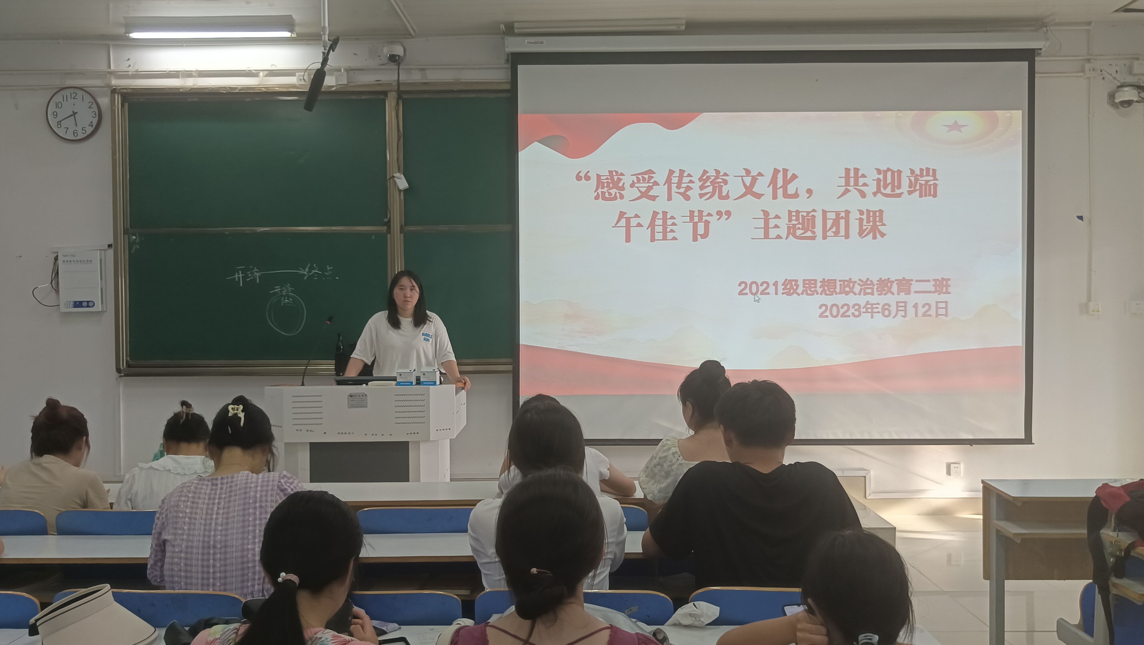 6月12日上午,crown皇冠体育平台2021级思想政治教育二班在社科楼514教室召开“感受传统文化,共迎端午佳节”主题团课。2021级思想政治教育二班全体团员参加此次团课。团课由团支书王婧欣主持。