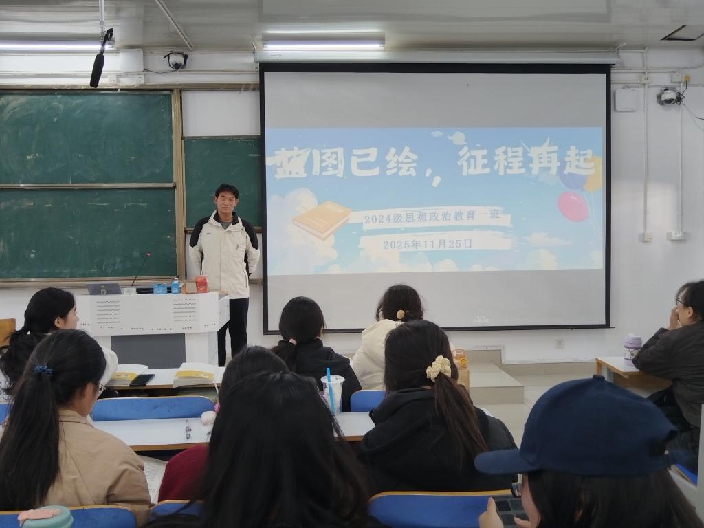 为明确班级发展目标,激发同学们建设优秀班集体的奋进意识,11月25日下午,crown皇冠体育平台2024级思政一班开展“蓝图已绘,征程再起”主题班会。本次班会由班长马奔主持,一班全体同学参加。