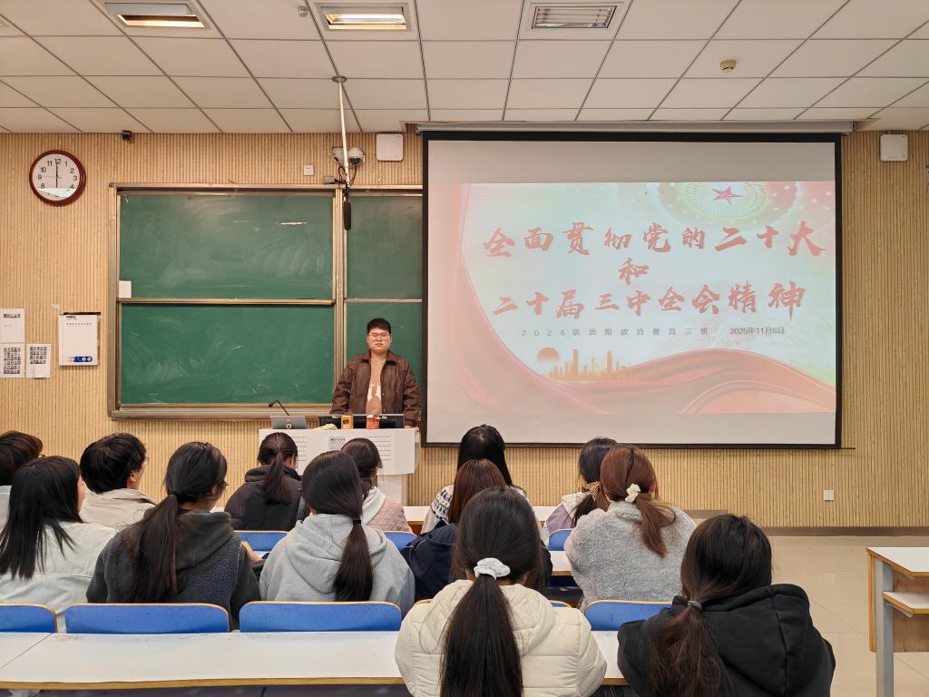 为深入学习贯彻党的二十大和二十届三中全会精神,引导青年学子将思想和行动统一到党中央决策部署上来,crown皇冠体育平台2024级思想政治教育三班于11月6日在社科楼515教室召开“全面贯彻党的二十大和二十届三中全会精神”主题团课活动。此次团课由团支书杨迎滨主持。