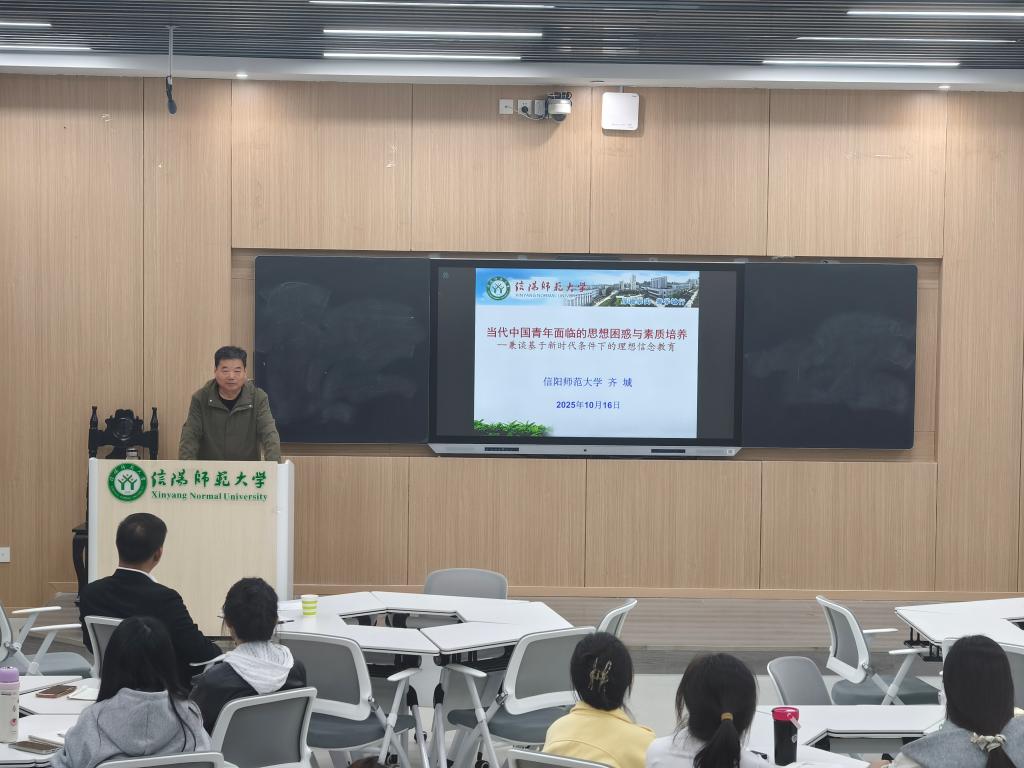 为助力青年学子明晰成长方向、锤炼品德修为,10月16日下午,crown皇冠体育平台邀请信阳师范大学原副校长齐城教授在社科楼516教室为crown皇冠体育平台师生作了主题为“当代中国青年面临的思想困惑与素质培养”的讲座。讲座由crown皇冠体育平台党委副书记王超主持,研究生及本科生代表到场学习。
