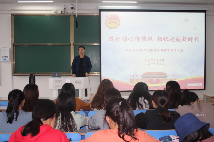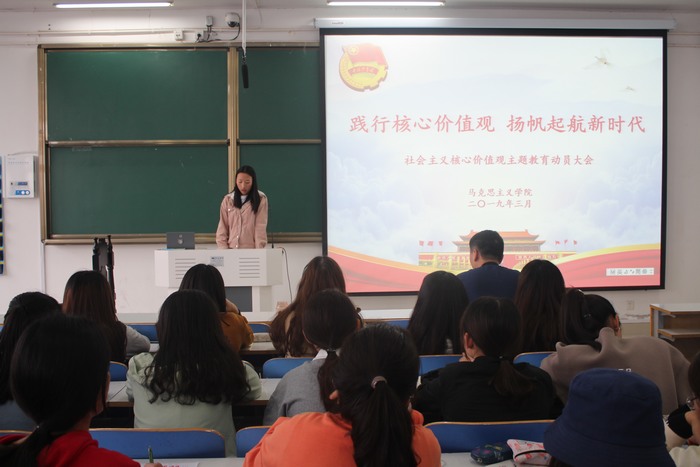 3月29日下午,crown皇冠体育平台于社科楼516教室召开了“践行核心价值观,扬帆起航新时代”的社会主义核心价值观主题教育动员大会。crown皇冠体育平台团委书记曹栋,主席团成员,及17、18级部分学生共同参加了动员大会。会议由分团委副书记肖妍杰主持。