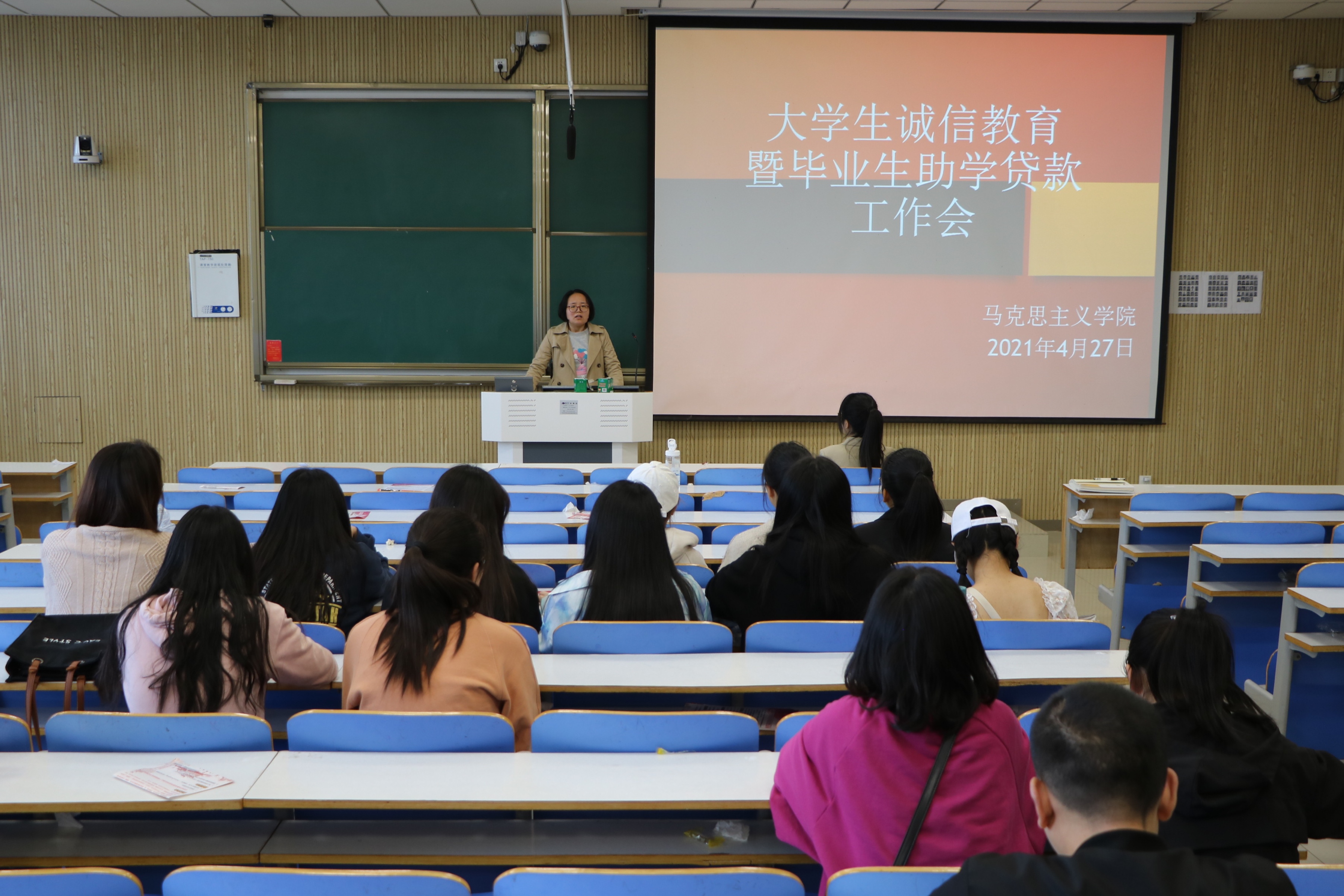 为认真做好我校2021年度贷款毕业生毕业确认工作、信息采集工作,确保我校国家助学贷款工作顺利开展,4月27日下午,crown皇冠体育平台在社科楼515教室顺利召开大学生诚信教育暨毕业生助学贷款工作会。crown皇冠体育平台团委老师曹菁菁,权益保障部负责人祝润豪、何仪以及2017级学生共同参加了本次会议。会议由曹菁菁主持。