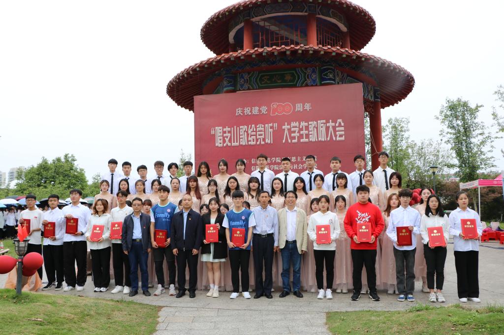大会共有13个班级参与。各参赛班级以建党100周年“唱支山歌给党听”为主题进行选曲,认真组织排练,精心设计动作,巧妙利用道具,增强表演的感染力。其中,2019级思政二班的《我们走在大路上》准确把握歌曲节奏,男音铿锵有力,女音清澈悦耳,动作整齐划一,赢得现场热烈掌声。《歌唱祖国》传达出对祖国深沉的爱与祝福,《走向复兴》唱出了奋进新时代的勇气与决心,《红星歌》、《映山红》、《团结就是力量》刻画了不忘初心、砥砺前行的艰苦奋斗精神,唱响拼搏奋进的时代主旋律。经过两个小时的激烈角逐,crown皇冠体育平台2019级思想政治教育二班、2020级思想政治教育一班脱颖而出,荣获一等奖,2019级思想政治教育一班等四个班级荣获二等奖。最后,领导嘉宾向获奖班级颁奖并表示祝贺,活动在《唱支山歌给党听》优美的旋律中圆满落幕。