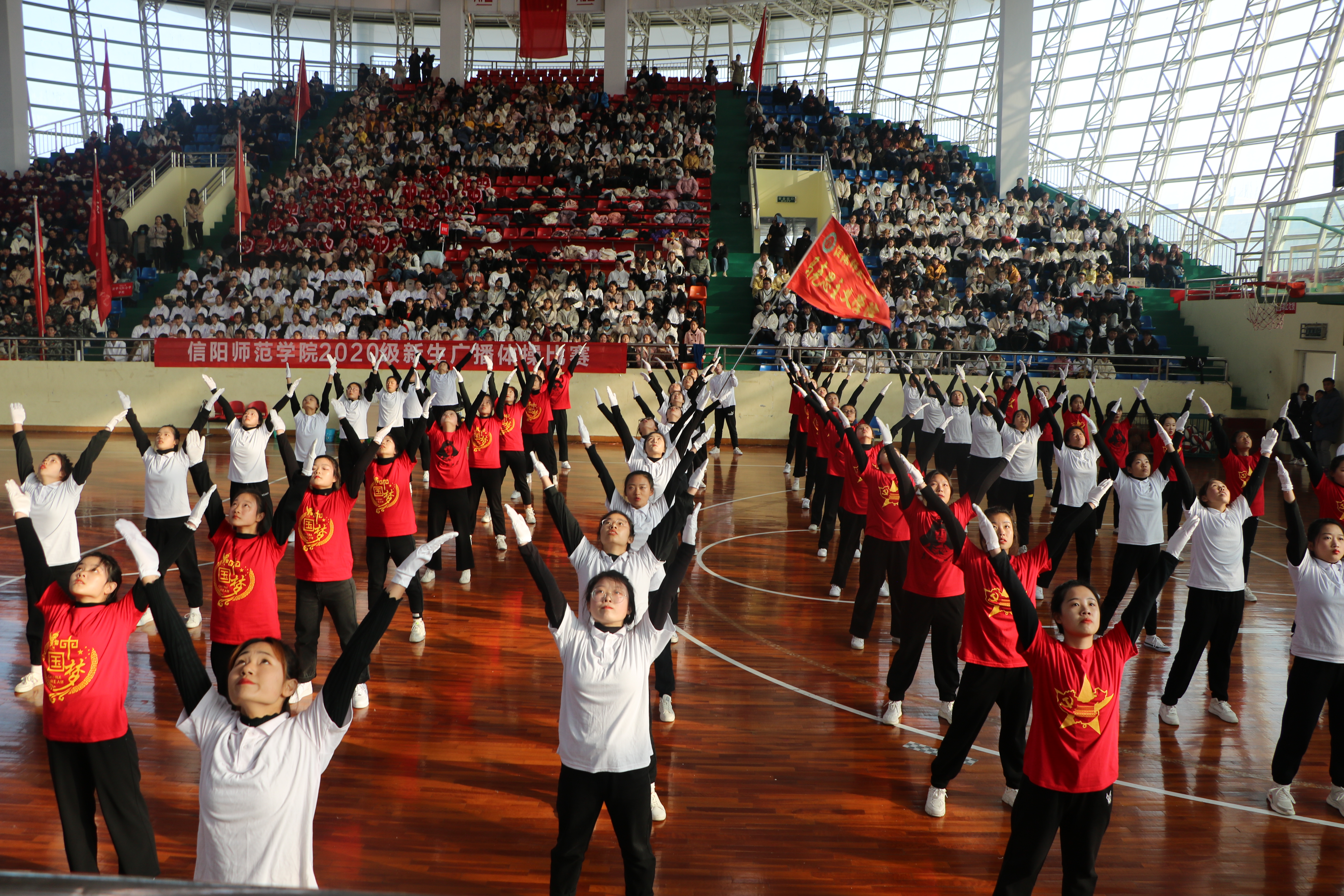 扬时代新风,展青年风采。11月29日下午,信阳师范学院2020级新生广播体操比赛在体育馆成功举办。地理科学学院团委老师曹鹏鹏以及信阳师范学院各学院学生会负责人共同观看本次比赛。crown皇冠体育平台团委老师陶青青亲临现场慰问crown皇冠体育平台参赛学生。
