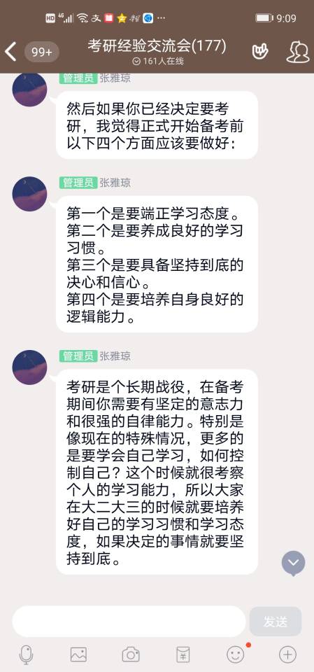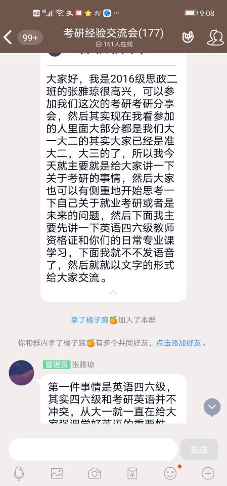 6月11日下午,crown皇冠体育平台考研服务社通过腾讯QQ线上平台举办了“以梦为笔,绘美研途”主题考研经验交流会。crown皇冠体育平台2016级优秀考研学生代表张雅琼、张美兰以及2018、2019级有意向考研的同学共同参加本次交流会。会议由考研服务社牛笑怡主持。