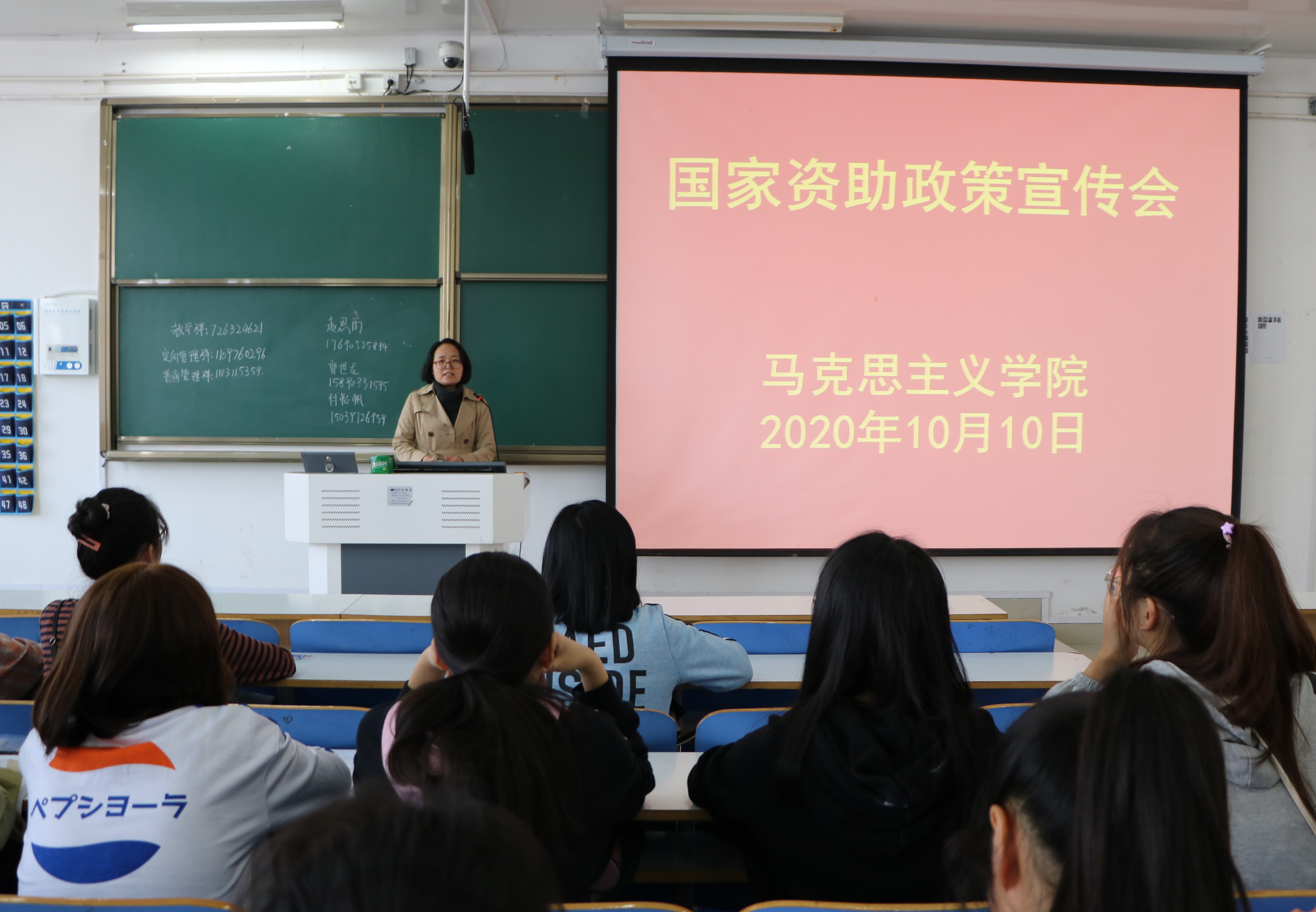 为深入贯彻落实国家资助政策,助力学生资助工作有效开展,10月10日下午,crown皇冠体育平台分别在社科楼515、516教室开展国家资助政策暨国家助学贷款政策宣传会。crown皇冠体育平台资助专员曹菁菁、学贷负责人祝润豪、何仪以及2020级全体新生共同参加了本次宣传会。