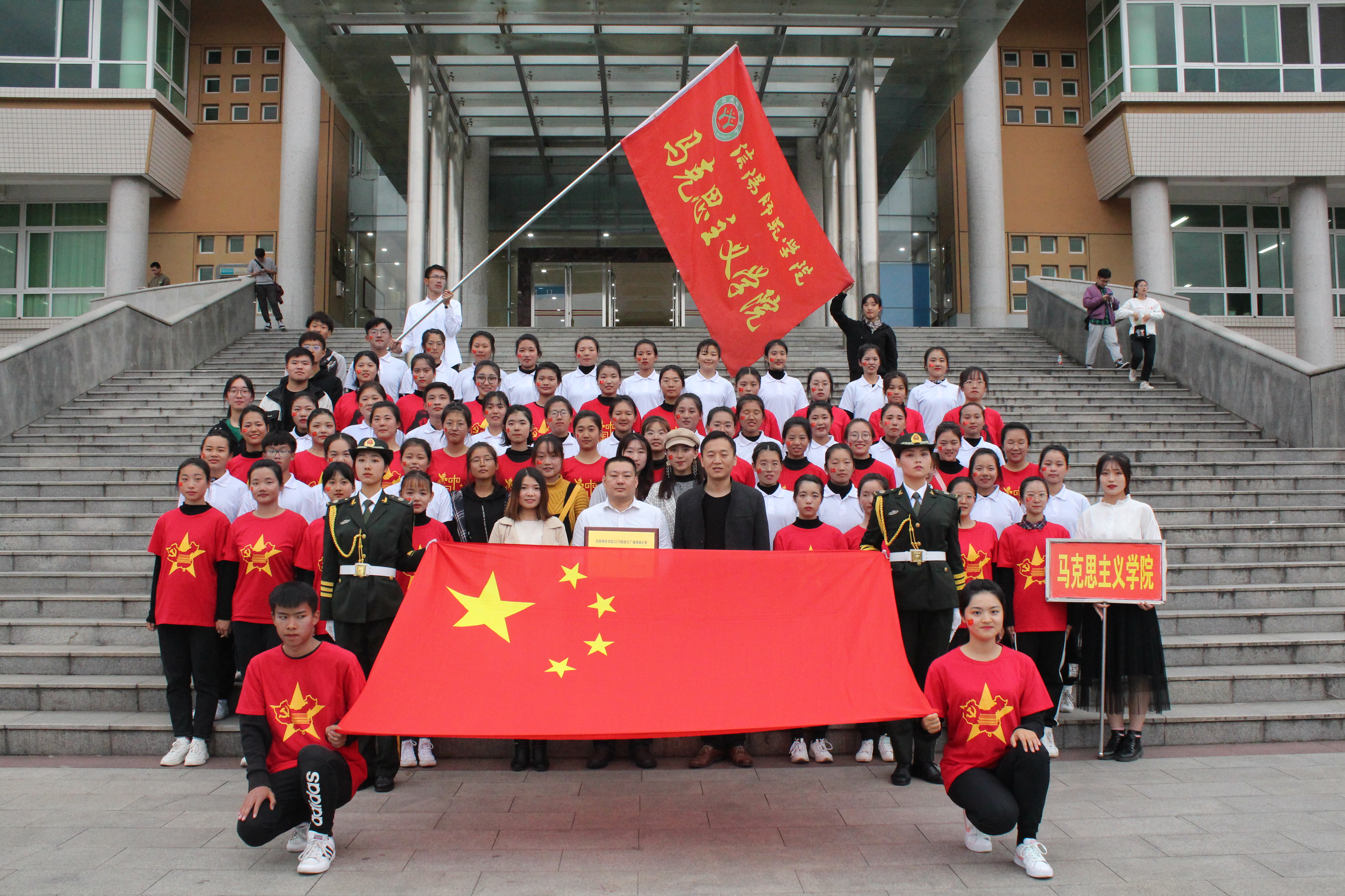 砥砺奋进扬风采,马院青年勇争先。11月12日下午,信阳师范学院2019级新生广播体操比赛在青年广场顺利举办。地理科学学院团委老师曹鹏鹏,信阳师范学院学生会主席韦秋存以及各学院学生会负责人共同观看本次比赛。crown皇冠体育平台党委副书记何晓坚、团委书记曹栋和团委老师陶青青亲临比赛现场慰问crown皇冠体育平台参赛学生。