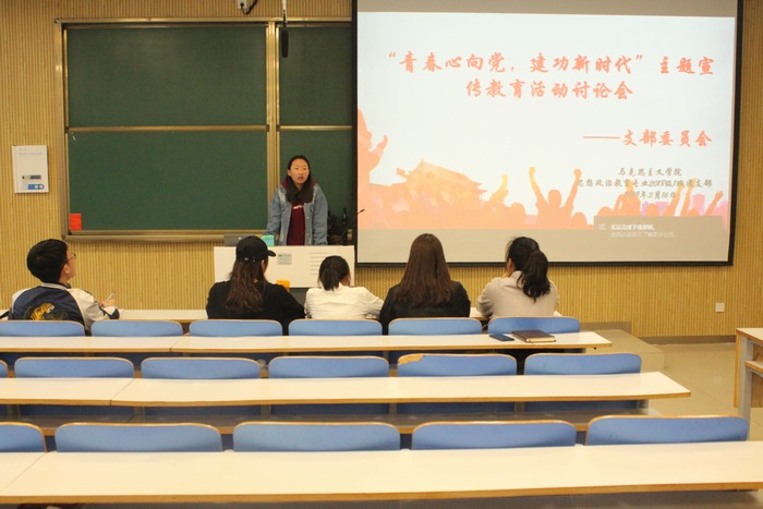 3月16日下午,crown皇冠体育平台2018级第一团支部在社科楼515教室顺利召开“青春心向党,建功新时代”支部委员会。2018级思想政治教育一班全体支部委员共同参加此次会议。会议由团支书靳雨露主持。