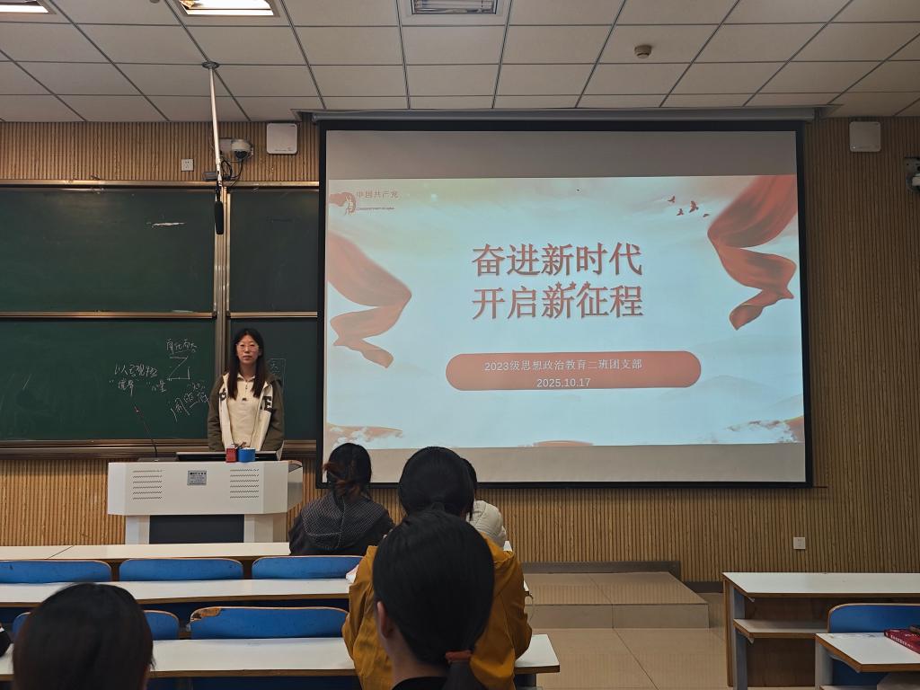 为进一步提振我班学生投入新时代新征程的动力与信心,10月17日上午,crown皇冠体育平台2023级思想政治教育二班在社科楼514教室开展“奋进新时代,开启新征程”主题团课,本次团课由团支书王慜初主持,全体二班同学参加。