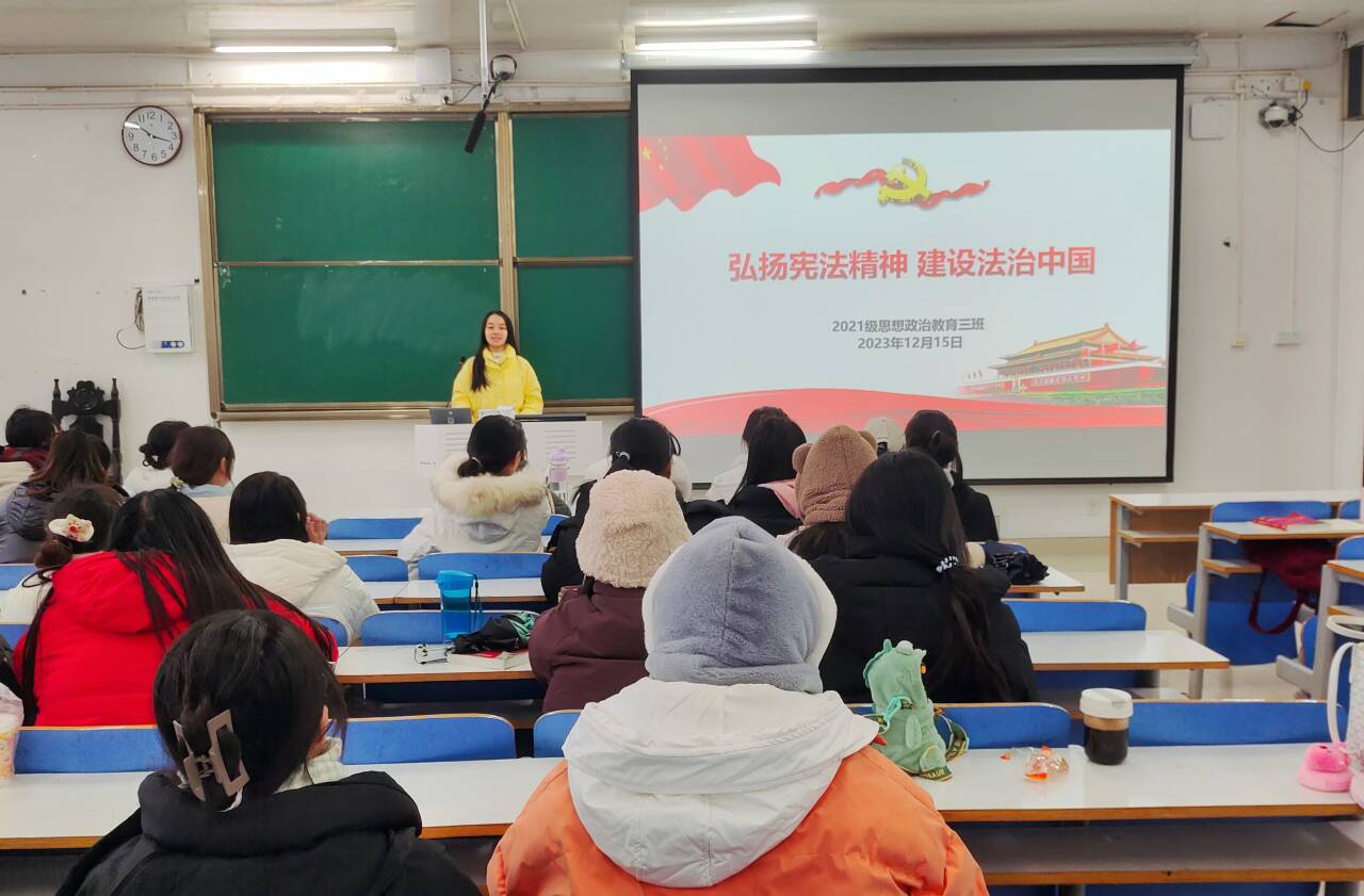 12月15日下午,crown皇冠体育平台2021级思想政治教育三班在社科楼514召开“弘扬宪法精神,建设法治中国”主题团课。crown皇冠体育平台2021级思想政治教育三班全体团员参与此次会议。团课由团支书王岚霄主持。